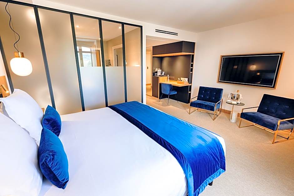 Step into the Suite Junior Albert, a spacious and luxurious suite measuring 355 sqft, complete with a comfortable king-size bed, private bathroom, and stunning views. Unwind and indulge in the minibar, coffee machine, and flat-screen TV. Enjoy the convenience of air conditioning, soundproofing, and other modern amenities.